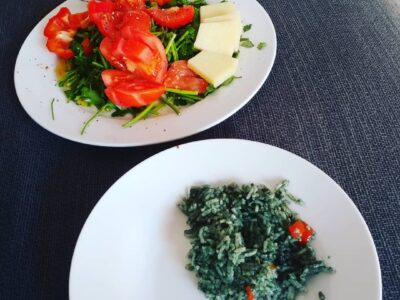 Spirilina Rice & Raw Cheese Salad #wholefood #rawfood #cleaneating #cleanliving #organic #digitalnomadlife #digitalnomad #locationindependent #paleo #plantbased #plantbasedpaleo #naturalnutrition #supersalad #freshveggies #detox #vegatables #vegatarian #eatthosegreens #eattherainbow #eathealthy